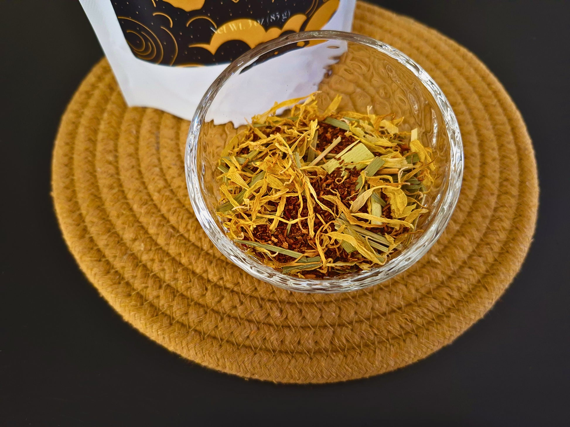 Lunar Lemon is a smooth, caffeine-free Rooibos tea with natural lemon and vanilla notes. It’s crafted specifically for the evening hours as part of a calming, sensory wind-down ritual.